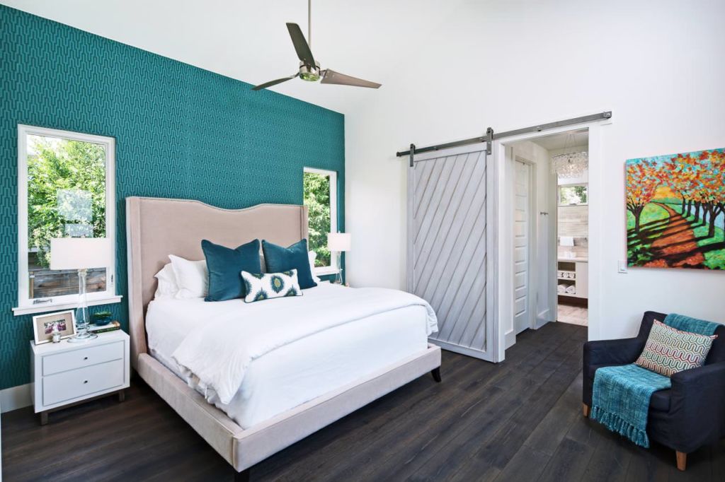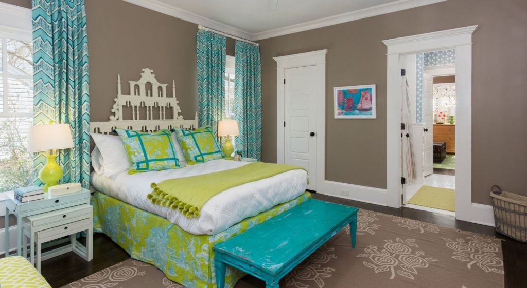 Для спальни в бирюзовых тонах характерны определенные оттенки: