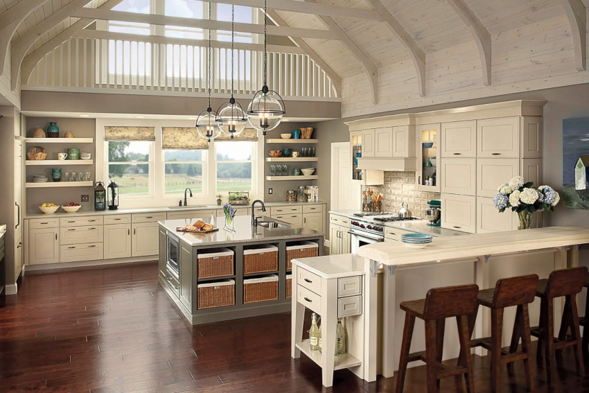 В американском стиле кантри преобладают спокойные тона: белый, бежевый, серый и древесный