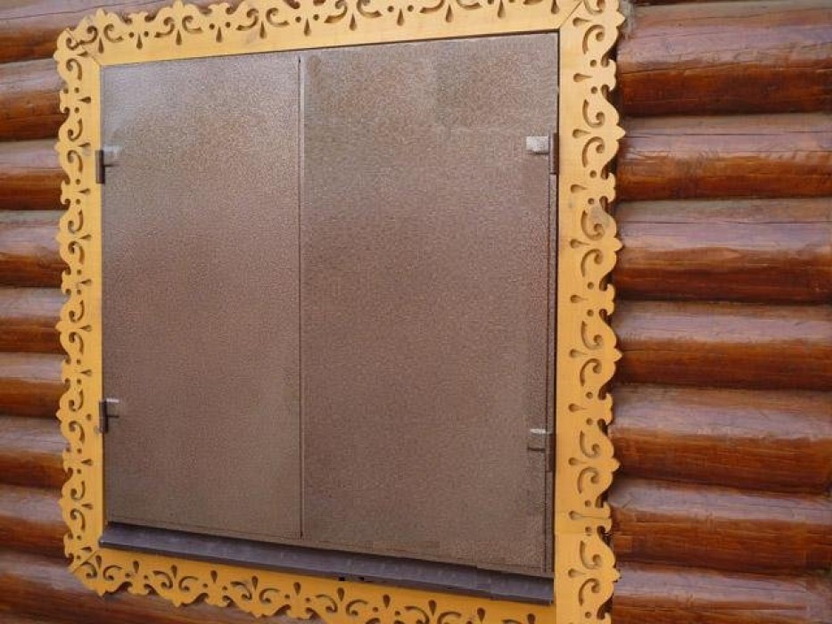Раньше ставни на окна изготавливались исключительно из дерева. Сейчас выбор материалов более разнообразен, но для дачных домиков из бруса ставни из древесины подойдут лучше всего. Створки можно украсить оригинальным кованым орнаментом, разрисовать или сделать резными. Даже не владея навыками резчика по дереву, с помощью обычного лобзика можно создать оригинальную конструкцию.