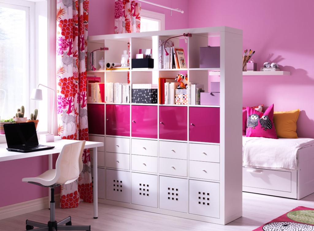 В детской комнате такая конструкция поможет определить границы игровой и учебной зоны, что дополнительно дисциплинирует ребенка. Плюс ко всему в интерьере детской появится прекрасное место хранения как школьных принадлежностей, так и множества игрушек.