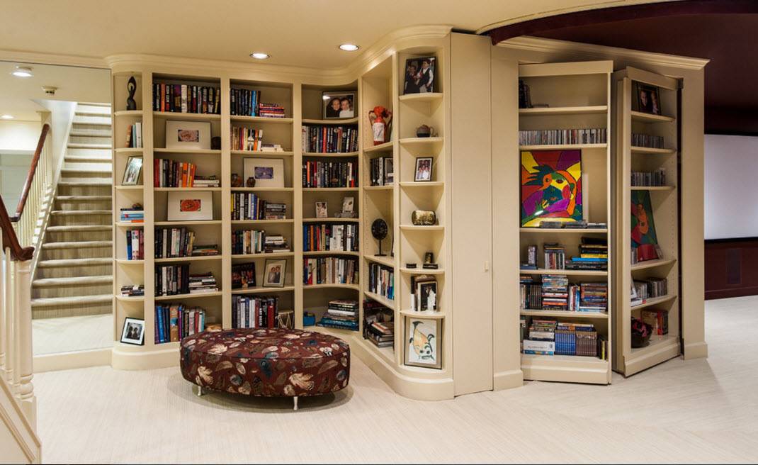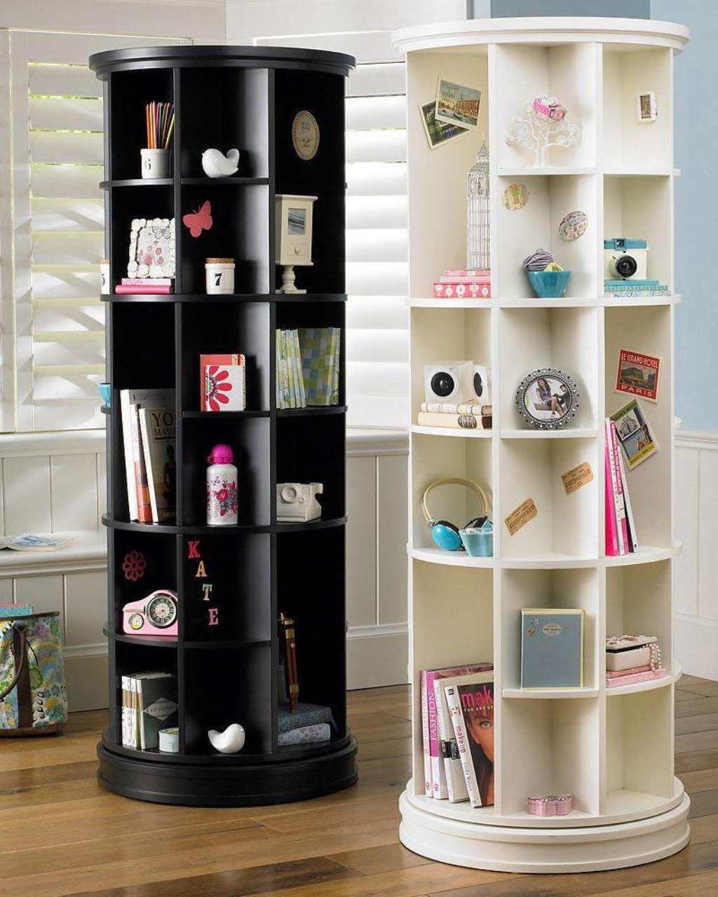 Оригинальная конструкция вращающегося стеллажа-цилиндра может быть вписана в интерьер обычной квартиры с функцией перегородки в комнате для размещения личных коллекций, наград или предметов рукотворного творчества.