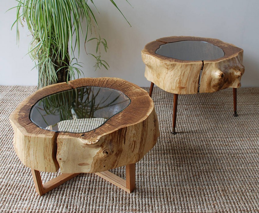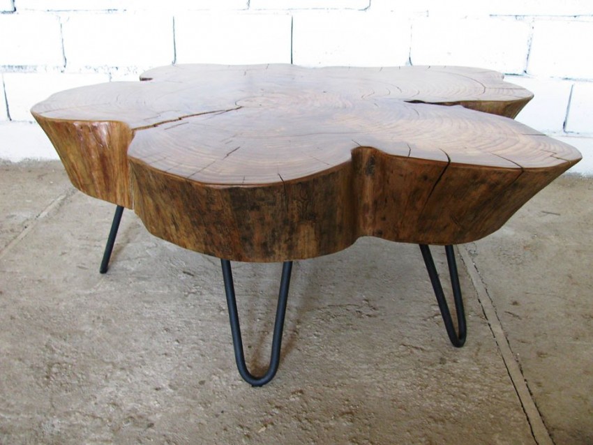 В основном это будут журнальные столики, оригинальные, отличающееся от привычных нам. В подборке будет встречаться даже древесина вместе с корой, смотрите!