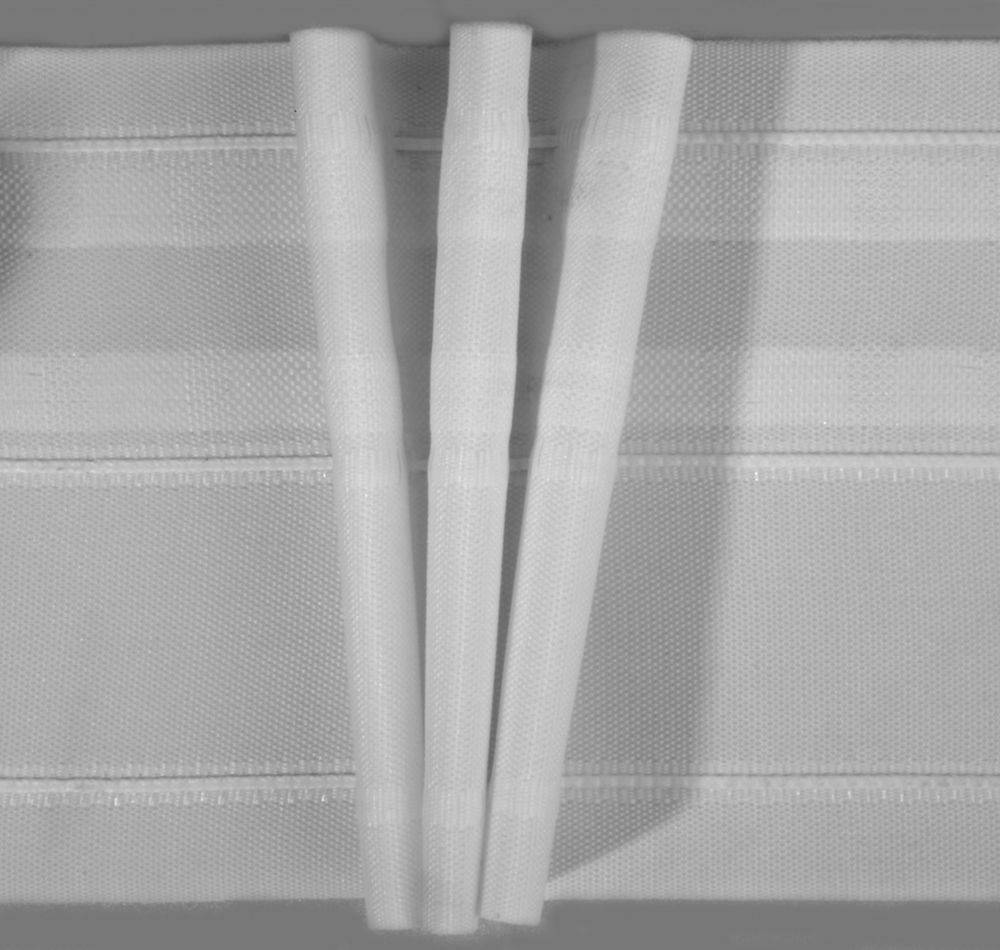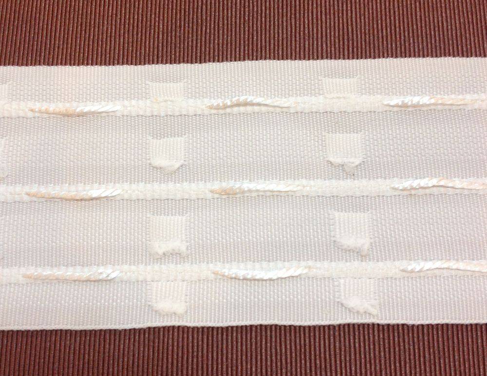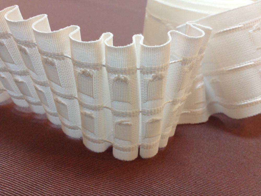- Белая, тканевая. Используется для плотных, тяжёлых портьер. Дает усадку, перед использованием ее нужно намочить и затем высушить.