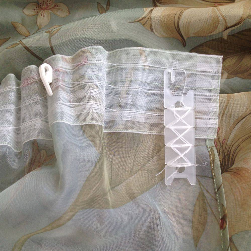 Теперь осталось лишь навесить на тесьму фиксирующие крючки и закрепить занавес на карнизе.
