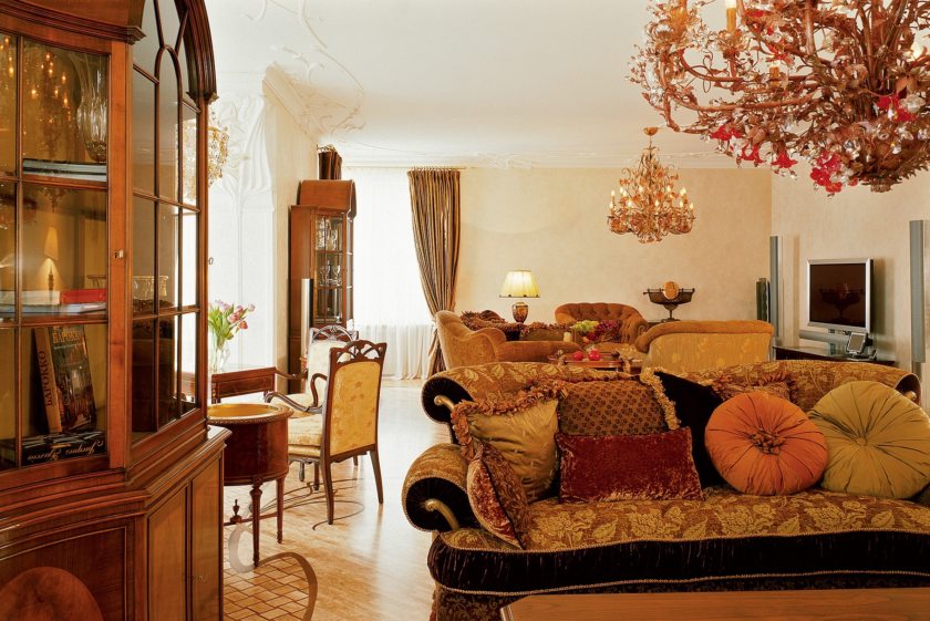 Сам стиль указывает на тонкий, изысканный и аристократический вкус хозяев помещения.