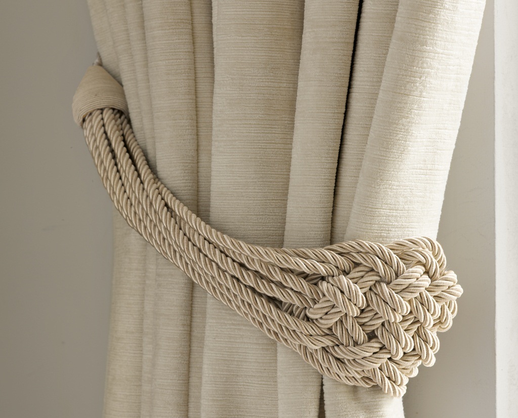 Великолепно смотрятся украшения в виде ромбов, стрел или листьев. Для крепления портьер подойдут классические карнизы, выполненные из металла. Можно просто набросить ткань на карниз, не закрепляя ее. Смотрится это необычно и изысканно. Некоторые модели крепятся к карнизу с помощью лент, люверсов или петель. Есть крепления в виде специально предназначенных держателей, которые располагают в районе подоконника. Их можно использовать для сбора и поднятия ткани, придавая ей нужную форму.