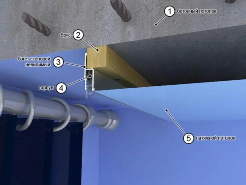 - Для крепления в нише обычно выбирается потолочный карниз. Это технологически более оправдано, к тому же при таком способе крепления не образуется ещё одна поверхность-пылесборник.