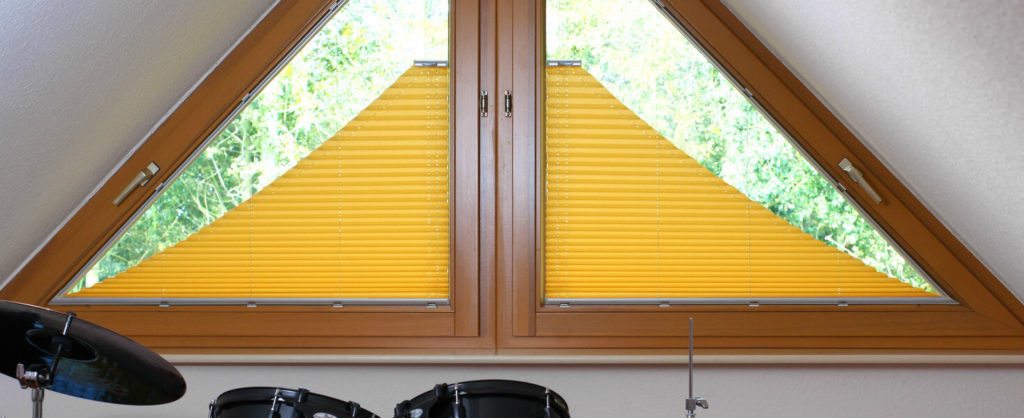 Если окна имеют треугольную форму или форму многогранника, стоит при помощи гардин акцентировать на них внимание, так как сами по себе такие окна являются изюминкой помещения и привлекают к себе внимание