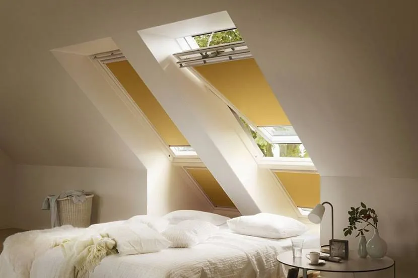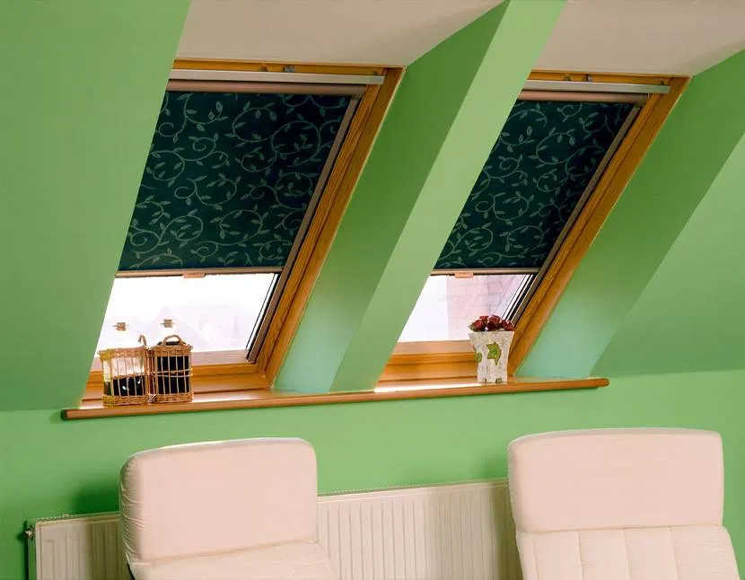 Шторы на мансардные окна со скошенным потолком можно усовершенствовать, открывая и закрывая их с помощью пульта.