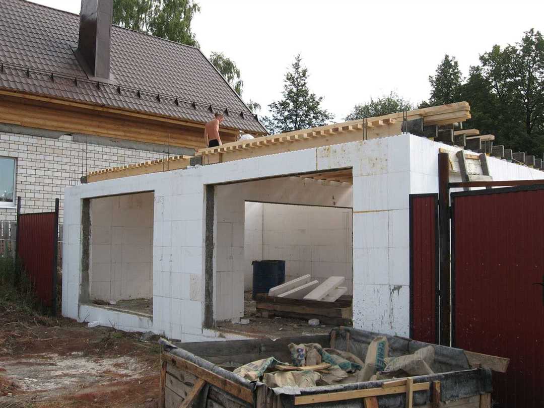 Одним из главных преимуществ строительства гаража из пеноблоков является высокая теплоизоляция камеры. Пеноблоки состоят из пористого материала, который хорошо задерживает тепло и обеспечивает уютную температуру внутри гаража.
