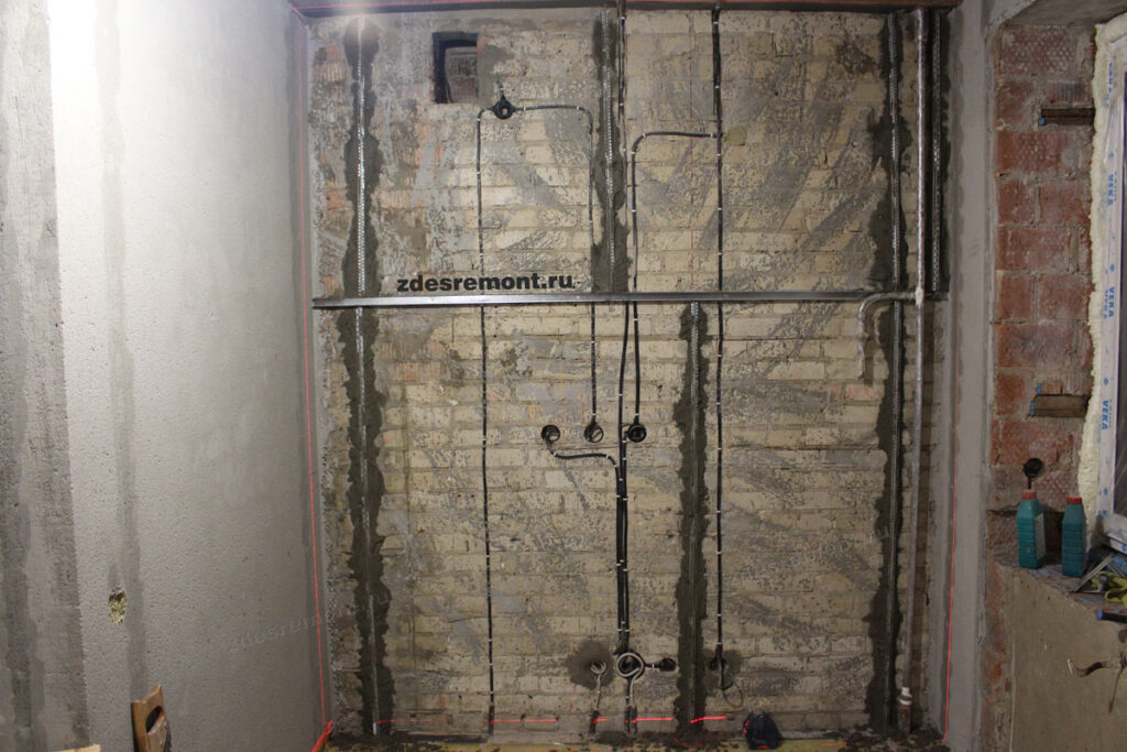 После того, как подготовлены поверхности, необходимо установить штукатурные маяки. Они задают будущую плоскость и толщину штукатурного слоя.