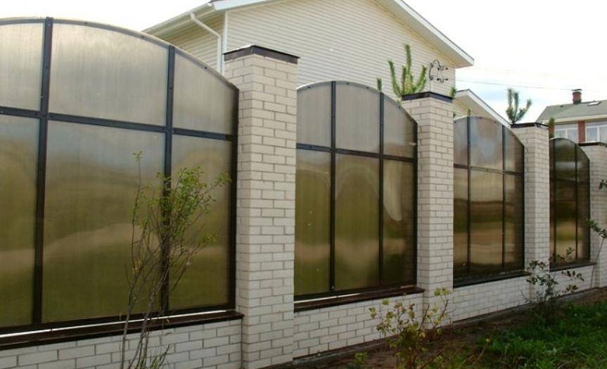 Сочетают первые две разновидности. Нижняя часть выполняется из сплошного листа металла. Именно нижняя часть ограждения более всего подвержена загрязнению и износу. Грязь и осадки неизбежно забили бы перфорированную панель, которая с загрязнением и превышением порога влажности снижает свои свойства, а при отрицательных температурах может легко деформироваться.