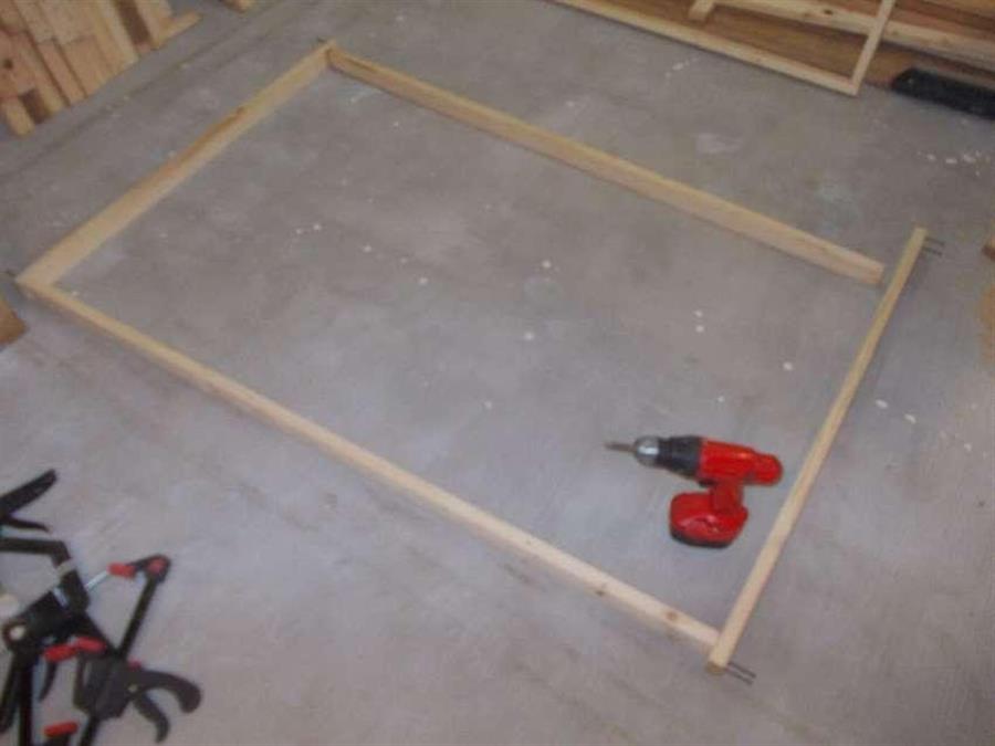 Перед сборкой каркаса необходимо сделать заготовки из брусьев. Сборку каркаса начинают с торцовых стен, которые крепят с помощью металлических уголков к несущему брусу.