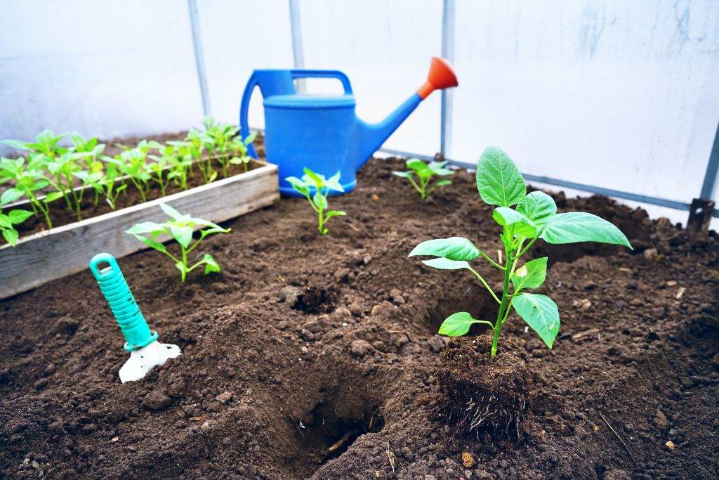 - Лунки копают глубиной до 15 см. Перец заглубления не любит.