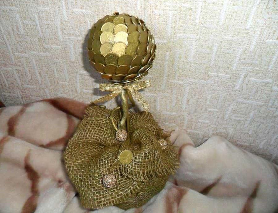Просмотрите все возможные фото топиариев и мысленно задумайтесь, какой из них понравился бы вашему мужчине, или тому человеку, которому вы решили сделать подарок. Безусловно, нежные деревца из фатина или топиарии с кроной из салфеток, вряд ли понравятся сильной половине человечества. Но даже самые не сентиментальные мужчины не откажутся от денежного деревца на своем столике, которое вы своими руками можете сделать из монеток.