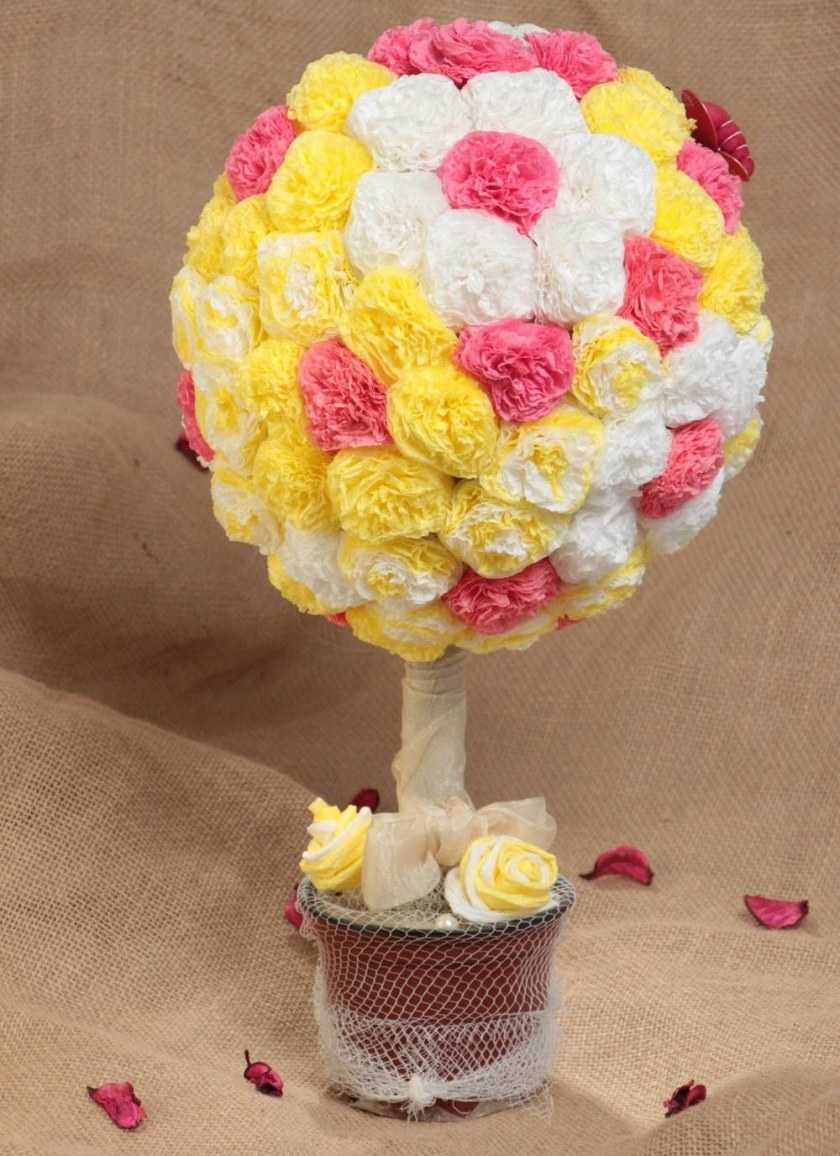 Использование подручных материалов в работе не делает ваше творчество менее привлекательными. Как делать топиарий своими руками из салфеток? Давайте разбираться.