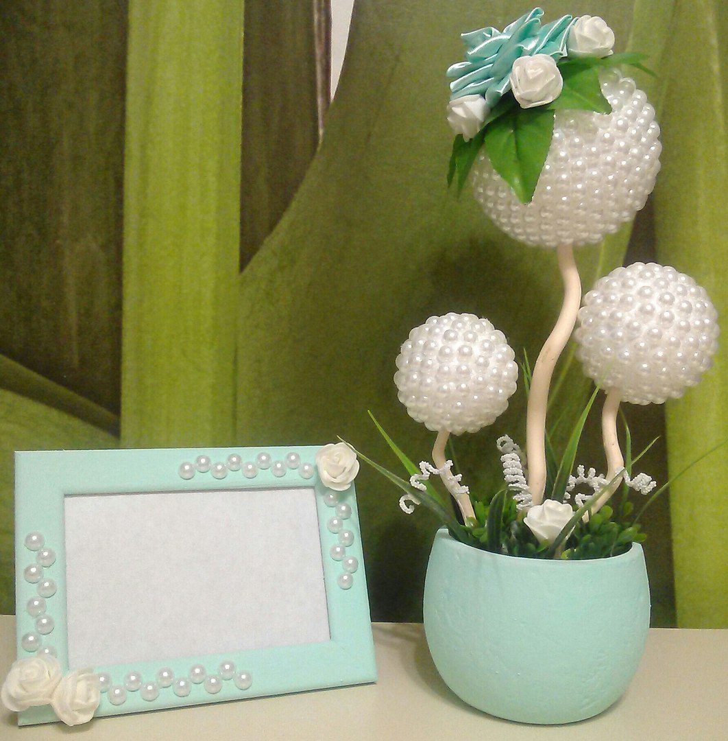 Топиарий из бусин выглядит очень нежно, отличный подарок на свадьбу.