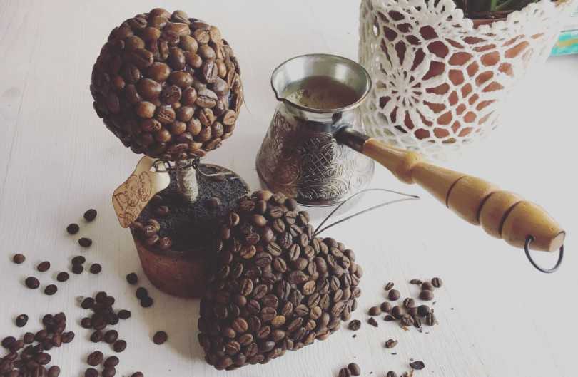 Подробный мастер-класс — дерево «Кофейные мечты» с фото и видео: https://topiarii-mk.ru/topiarii-iz-cofeinyh-zeren/.