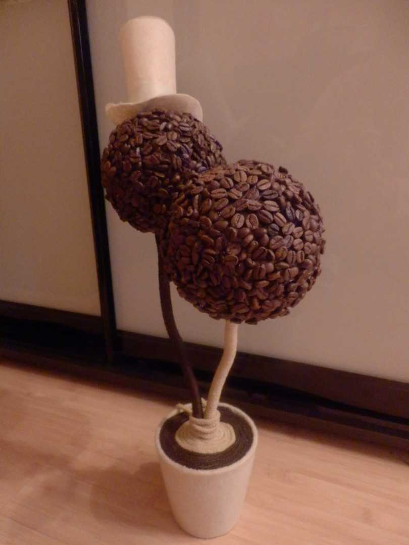 Полный мастер-класс — топиарий своими руками «Капельки росы» с фото и видео: https://topiarii-mk.ru/kofeynyiy-topiarii/.