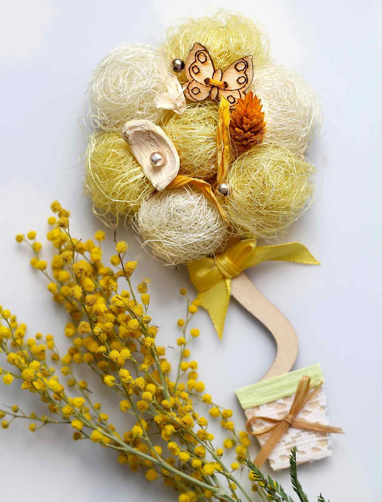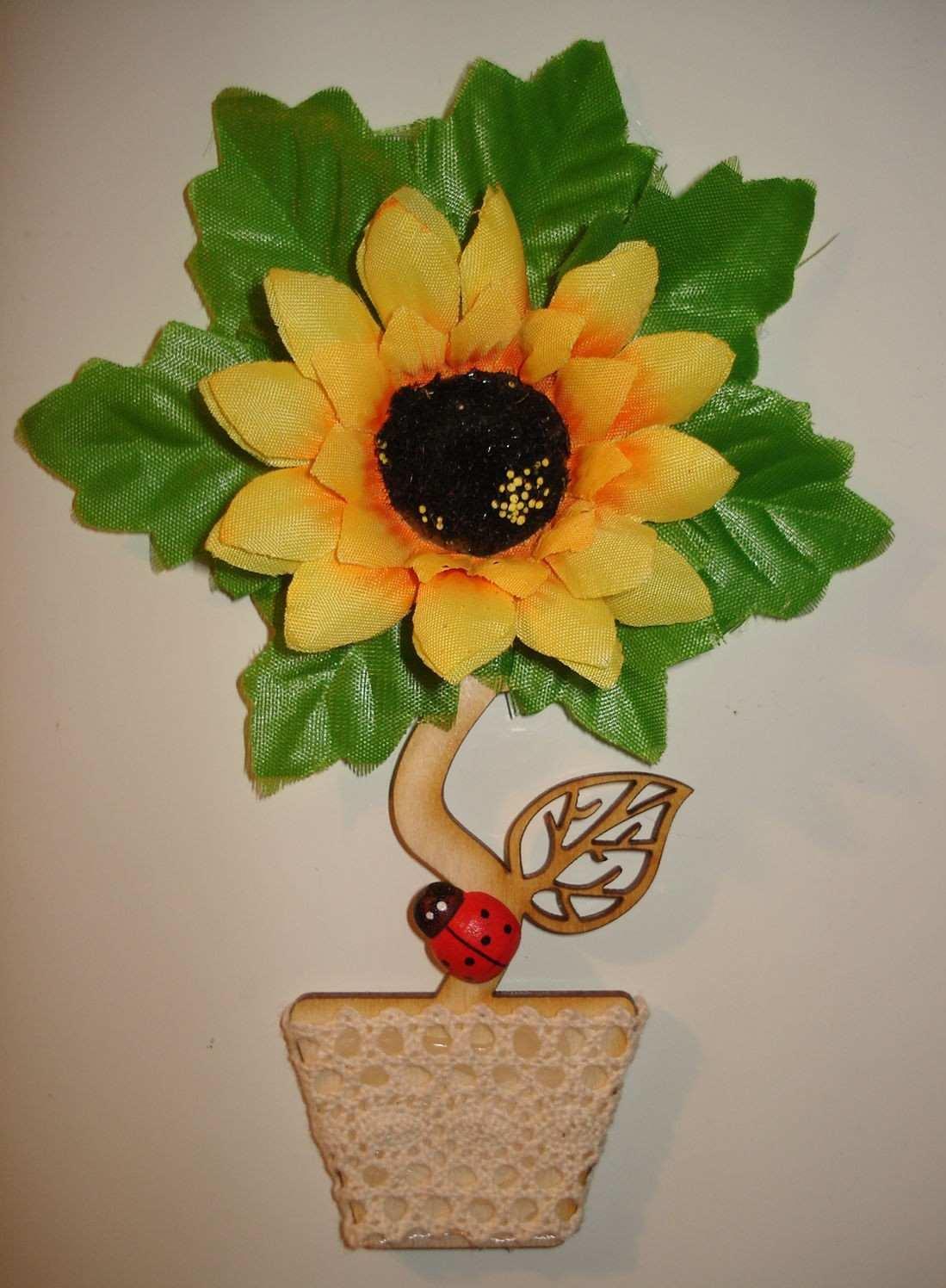 Лето может навсегда поселиться в вашем доме в виде рукотворного подсолнуха. А если использовать при его изготовлении зерна натурального кофе, то бодрящий аромат поднимет настроение всем домашним.