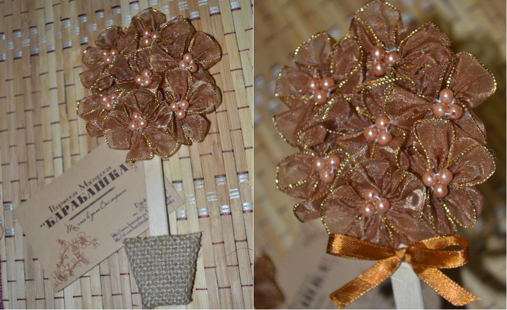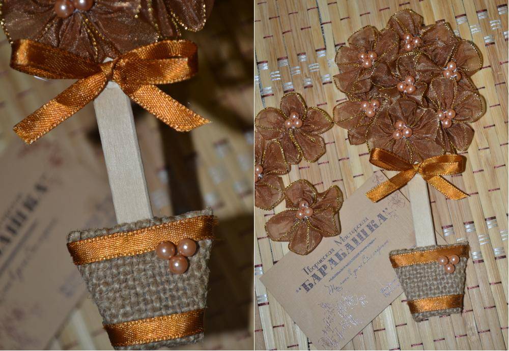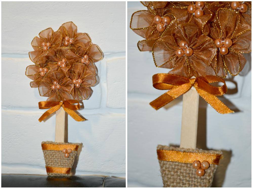 Варианты изготовления украшений для топиария из атласных лент