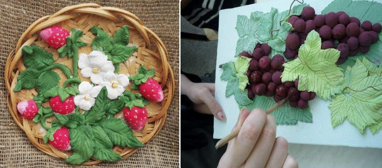 Если нет возможности приобрести элементы декорирования – ягоды, лепестки цветов, фрукты, то их можно выполнить своими руками из соленого теста.