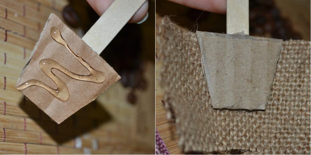 С помощью мешковины прячем картонную заготовку.