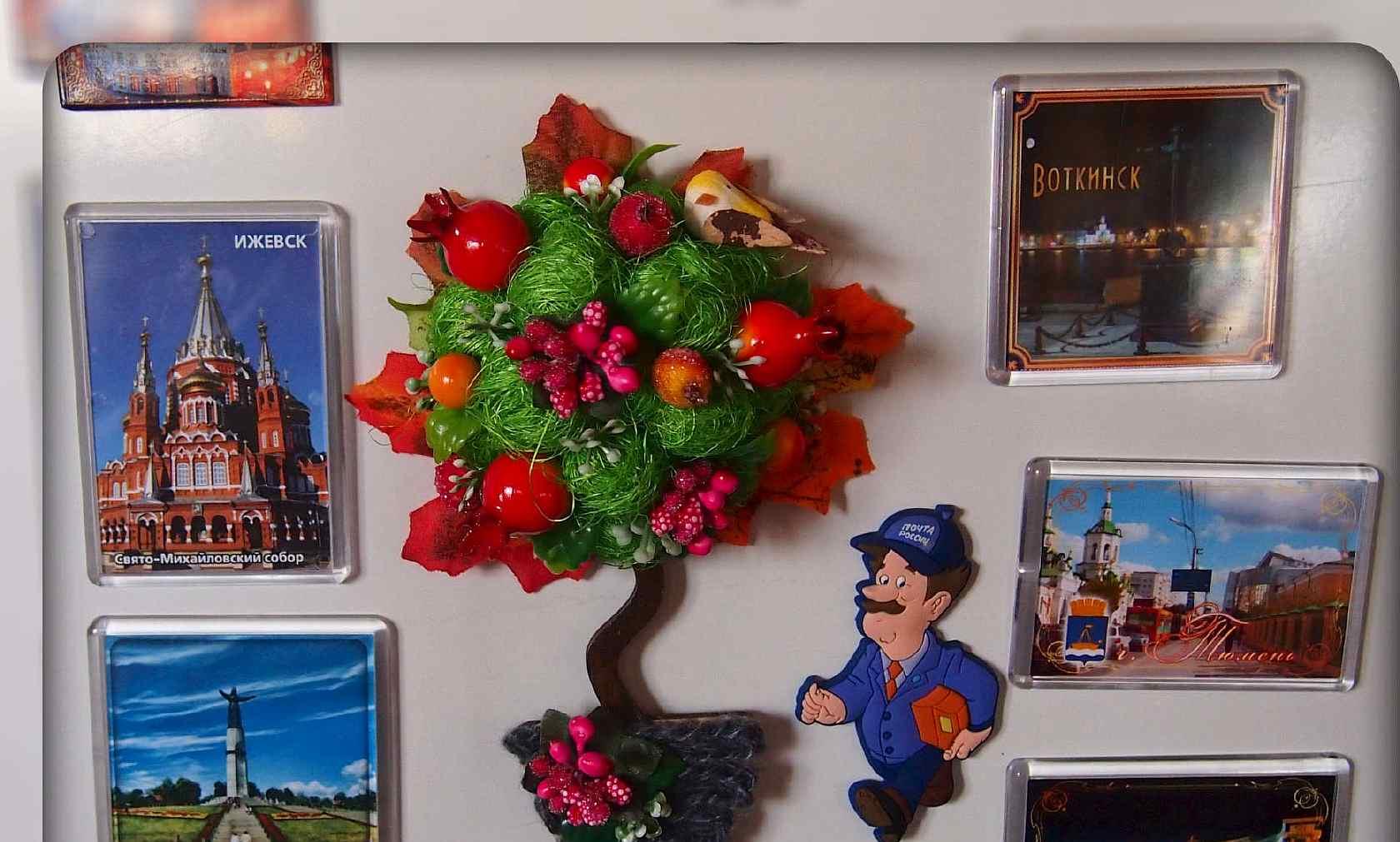 Как только магнит топиарий хорошо подсохнет, его можно смело дарить или использовать для украшения интерьера собственной кухни. Магниты топиарии хороши тем, что много места не занимают и могут быть совершенно разными по стилю.