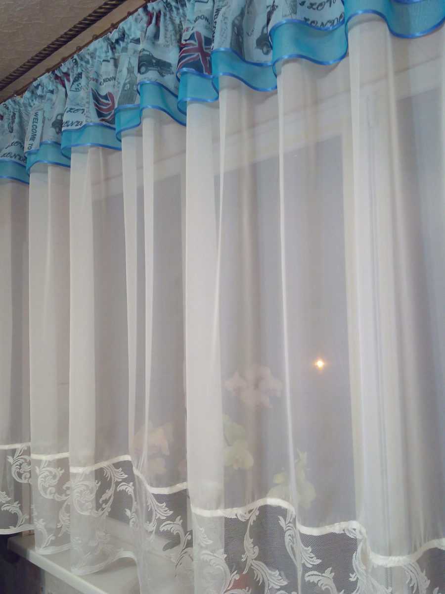 - Тюль с ламбрекеном из ситца. Этот вариант позволяет сделать помещение более уютным.