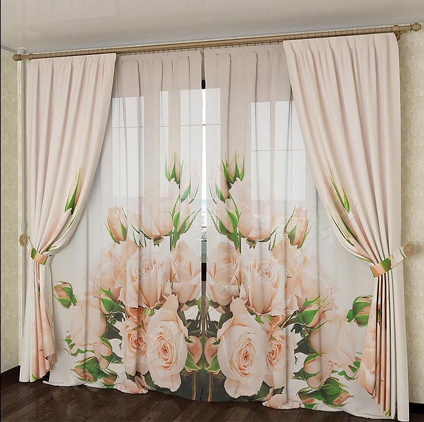Ткань очень удобен в эксплуатации. Он превосходно стирается в машинке, быстро сохнет, его легко утюжить. Ткань не притягивает пыль, потому ее часто вешают в детской. Лучшим для гостиной считается ткань а-ля снежок: белоснежный тюль. Это может быть ткань с крупными цветами, причудливыми узорами или какой-то изысканной печатью (сакура). Только посмотрите картинки – вариантов очень много.