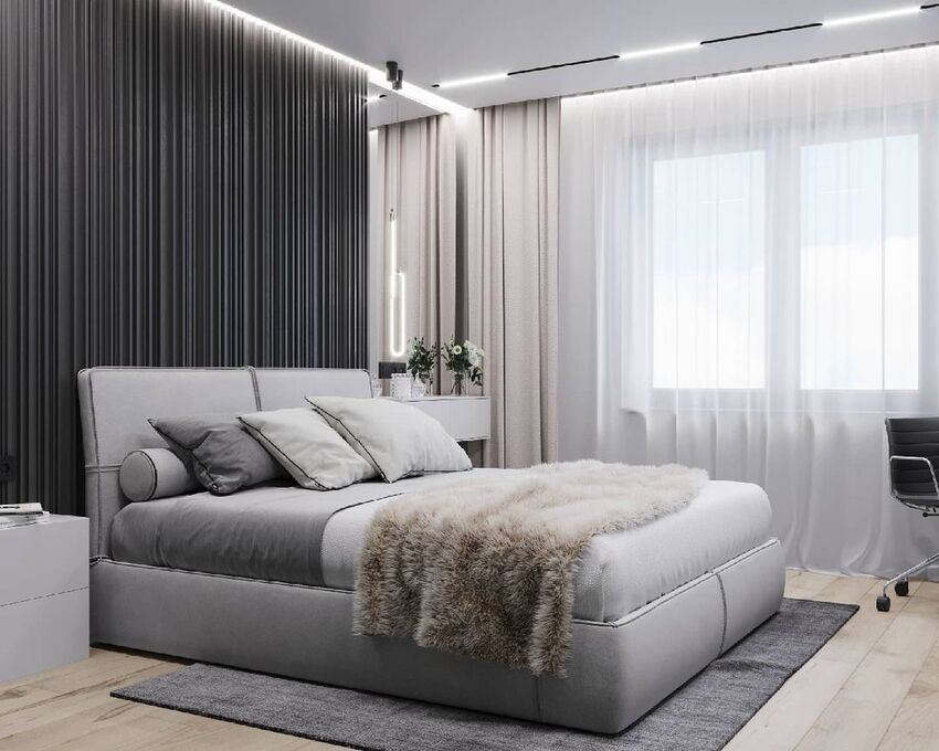 В спальнях с минимальной естественной освещенностью следует использовать прозрачный тюль или цветную органзу. Рекомендуется отказаться от дополнительных декоративных элементов, чтобы полотно не препятствовало попаданию солнечных лучей.