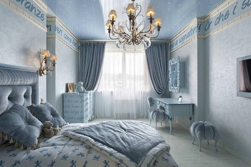 Не рекомендуется использовать синтетику, так как она выглядит неестественно в нежных и уютных спальнях.