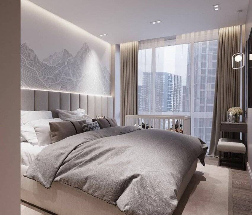 Если дизайн спальни оформлен в минималистическом, скандинавском, классическом или эко стиле, римская штора идеально впишется в интерьер.