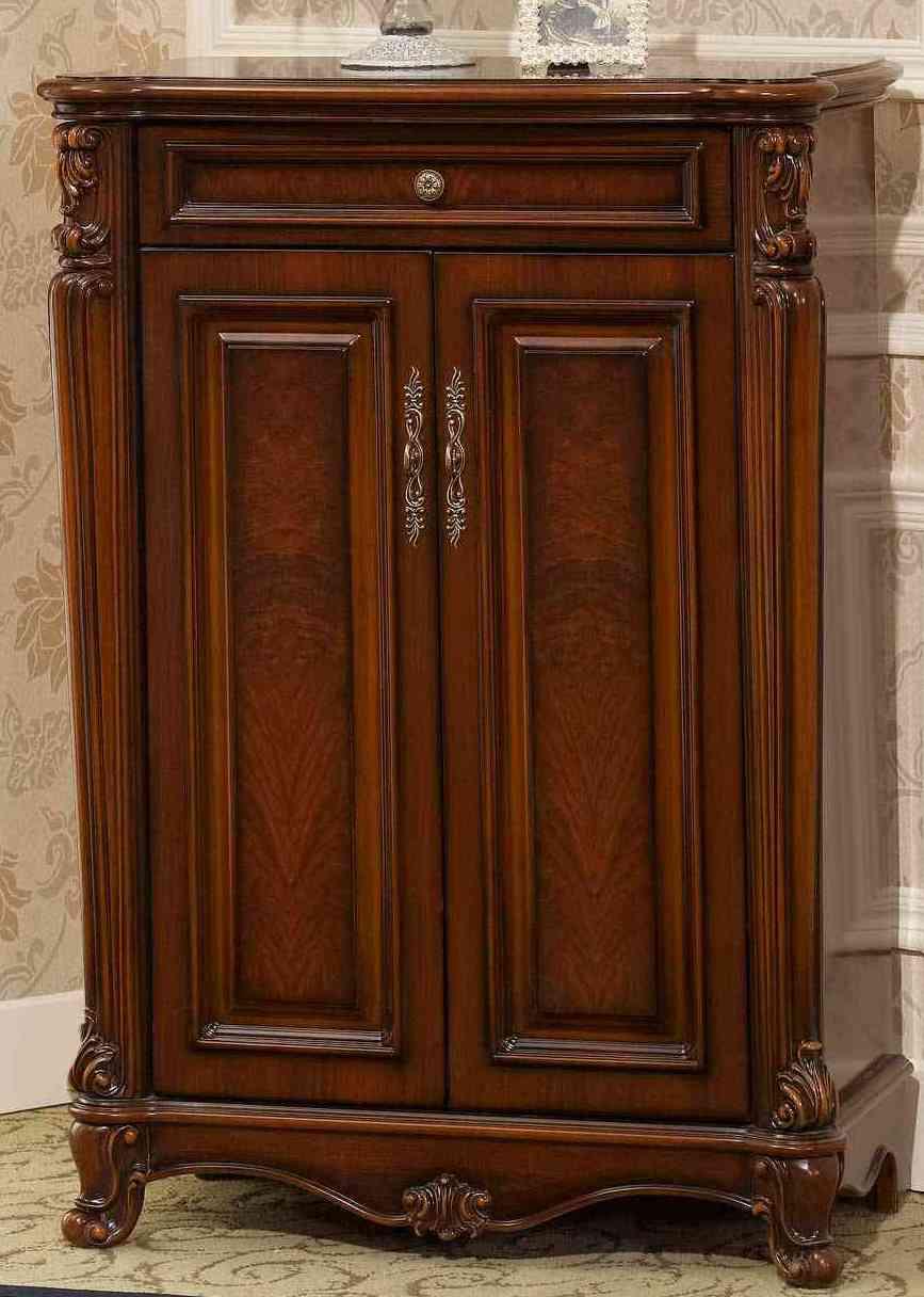 Деревянный комод для обуви, украшенный позолотой и орнаментом. Подходит направлениям барокко, рококо, ампир.