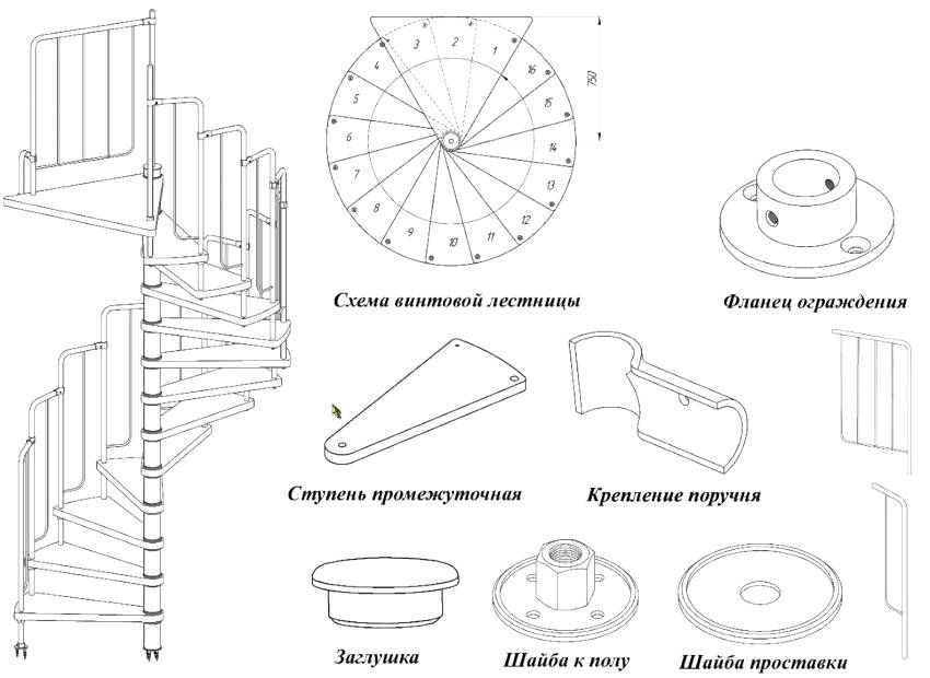 Какие элементы должны присутствовать в перилах для лестниц винтового или маршевого типа