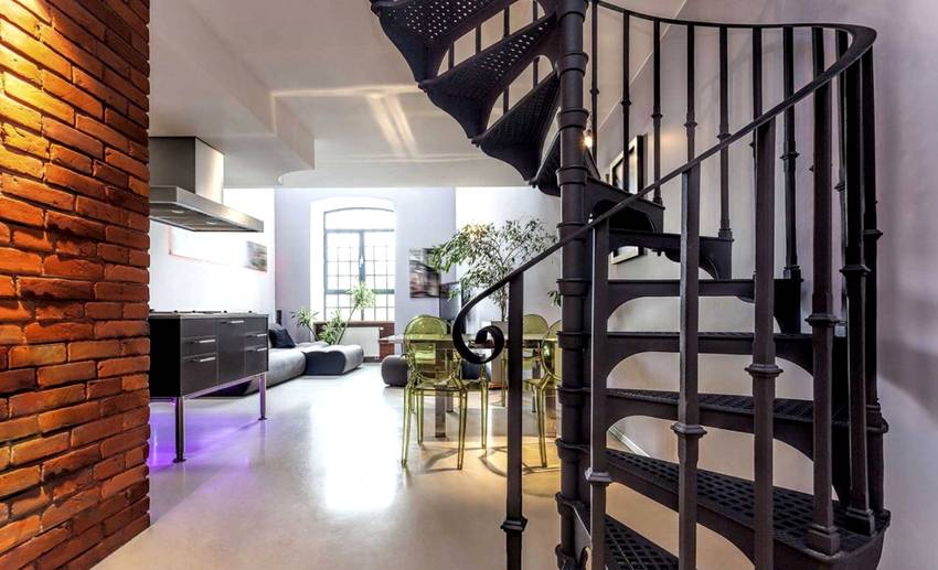 В домах с винтовой лестницей перила необходимы, в первую очередь, для безопасного передвижения по лестнице