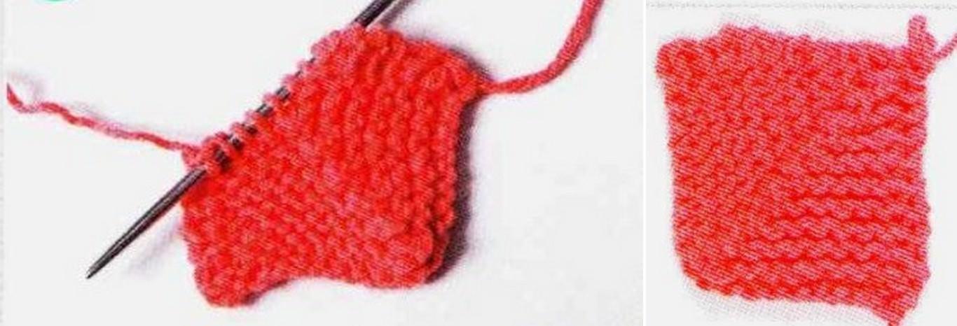 Все квадраты в технике лоскутное вязание выполняют так: лицевые петли с обеих сторон. Во втором ряду делают убавления, провязывая 3 петли в центре вместе лицевой.