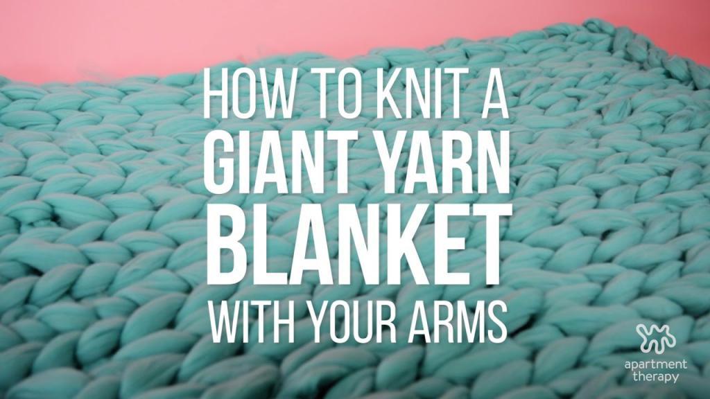 Пряжей такой толщины, как на видео, нужно набрать 25 петель, для пледа шириной 150 см. Длины предплечья как раз хватает для такого количества.