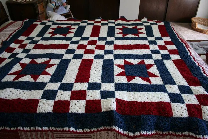 А ещё из вязаных мотивов можно сделать удобную домашнюю одежду, сумки, игрушки, очаровательные одеяльца для малышей. Более того, рукодельницы делают даже целые лоскутные комплекты, которые смотрятся очень красиво.