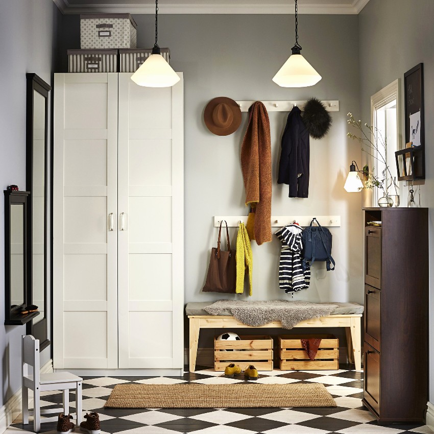 - Заранее побеспокойтесь о наличии секций или держателей для зонтиков, обуви или ключей;