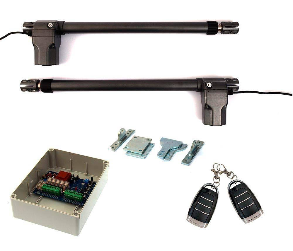 Нужно смотреть, чтобы их ход штока был от 35 см. Для установки нужно просто зафиксировать к створкам, столбам крепежные кронштейны под приводы.