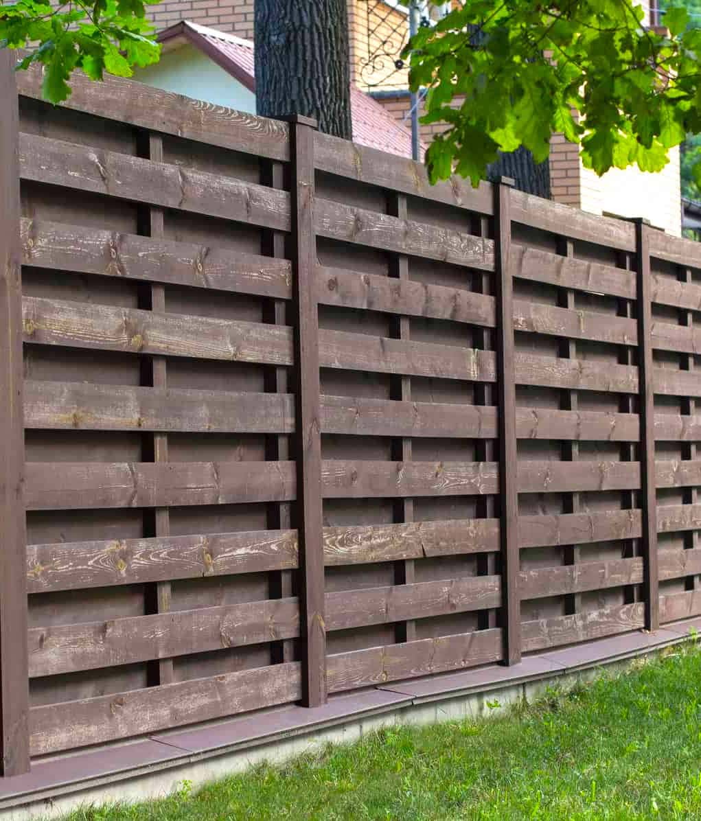 Если же вы решили строить горизонтальный деревянный забор сами, имейте ввиду, что доски, которые будут лежать в основании забора, необходимо обмазать битумом – смолоподобным веществом, которое будет выполнять гидроизолирующую функцию.