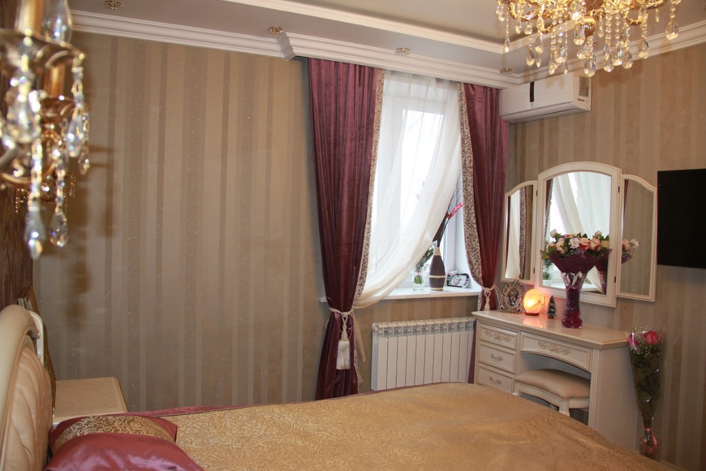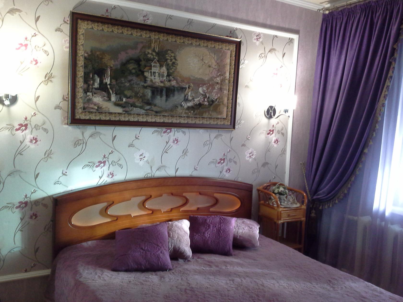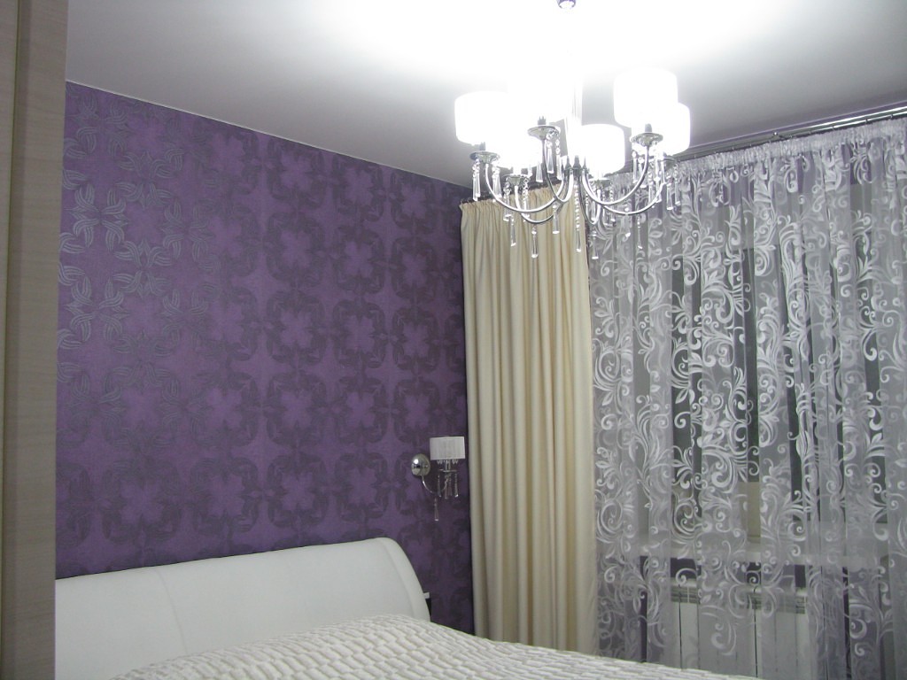 А если использовать сиреневые шторы из шёлка, то комната будет выглядеть роскошно и аристократично.