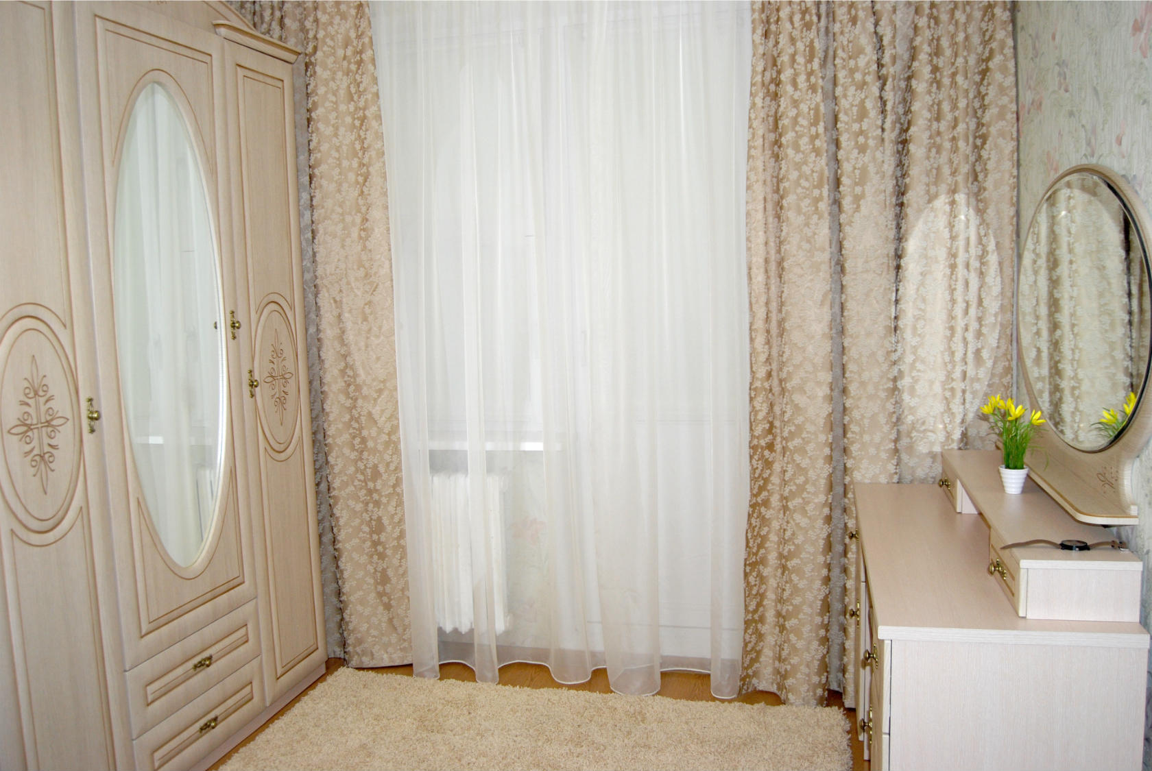 - Если нет цели выделить окно, то цвета должны быть нейтральными, в этом плане к бежевым шторам не прицепишься;