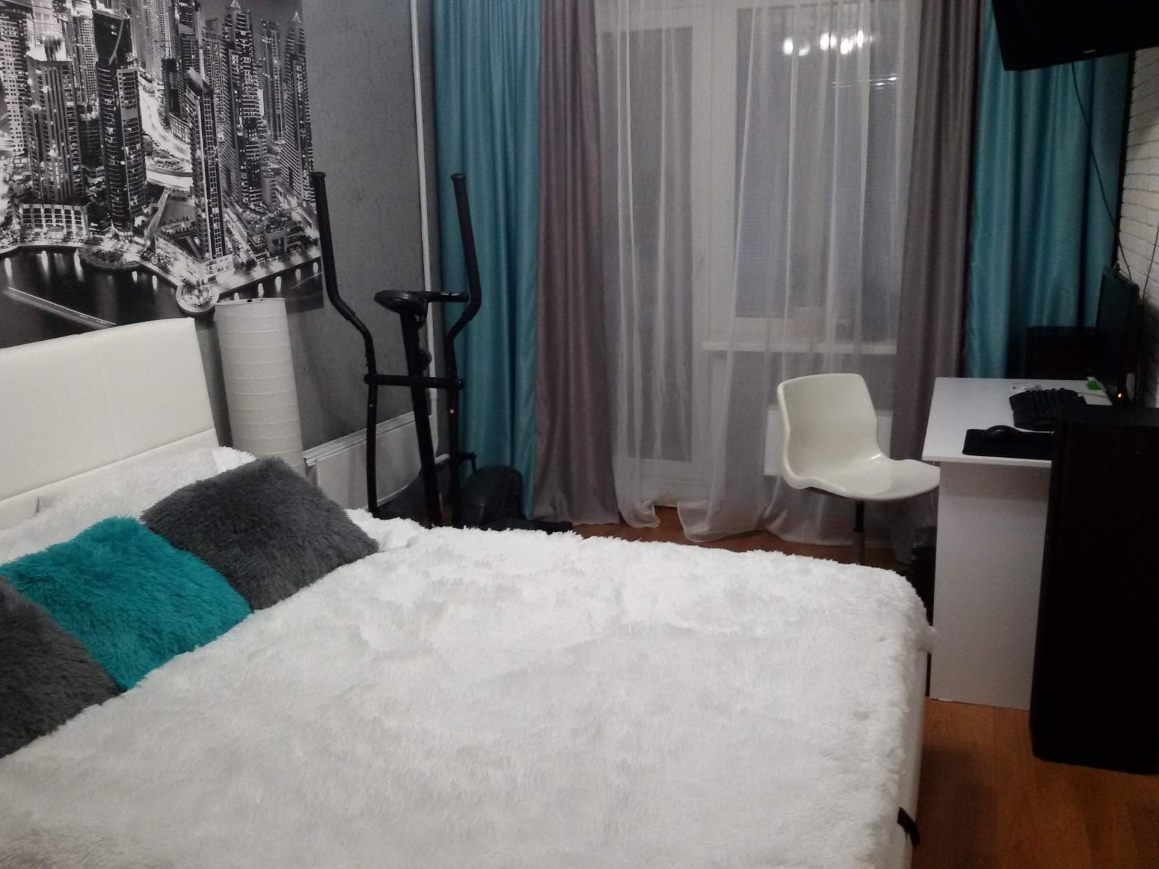 Бирюзовый цвет создает эффект приятной свежести. Такие шторы отлично гармонируют с белоснежными стенами. Они помогают создать праздничную атмосферу, сочетаясь с множеством тонов в отделке. Холодные оттенки бирюзы действуют успокаивающе, а теплые, наоборот, заметно поднимают настроение, снимают усталость и признаки депрессии.