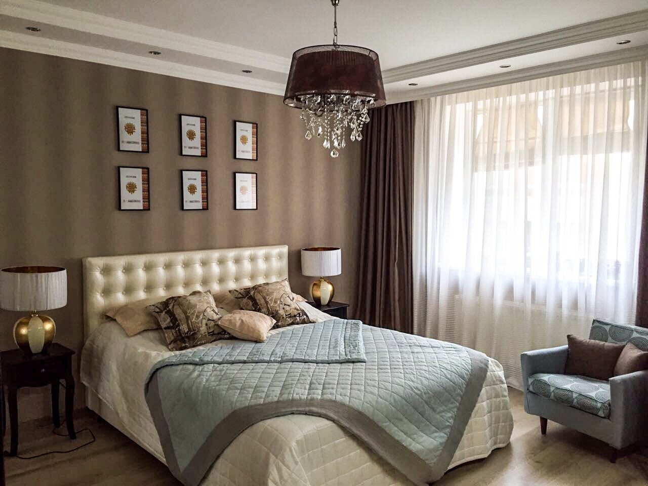 Коричневые шторы помогают создать уютную атмосферу. Эта цветовая гамма часто используется при оформлении спален. Коричневые тона чудесно гармонируют с голубым, изумрудным и золотым. Они дают ощущение спокойствия и защищенности, выглядят элегантно.