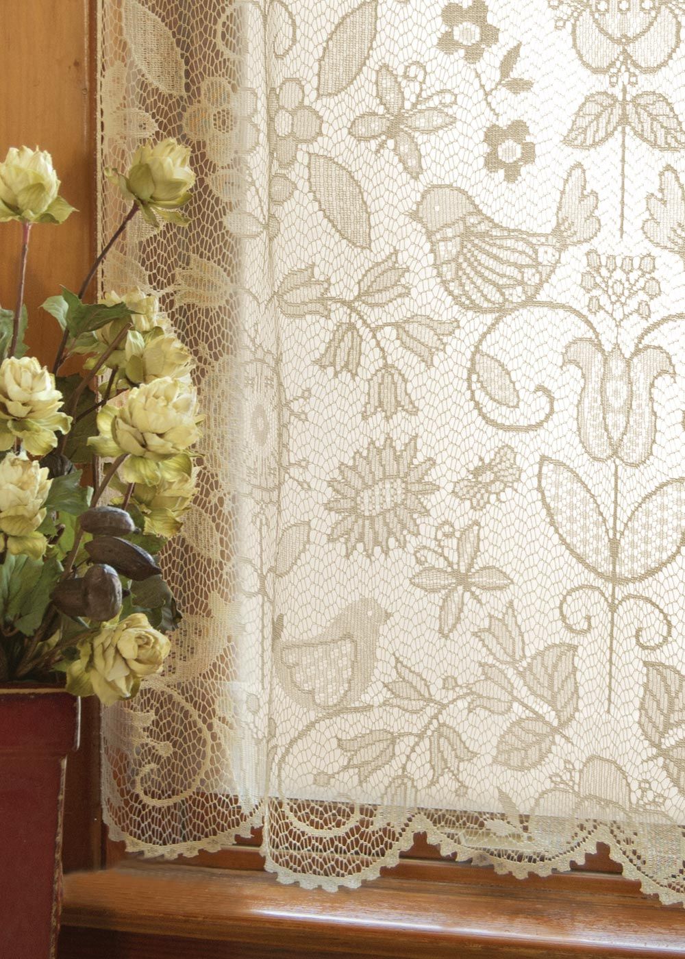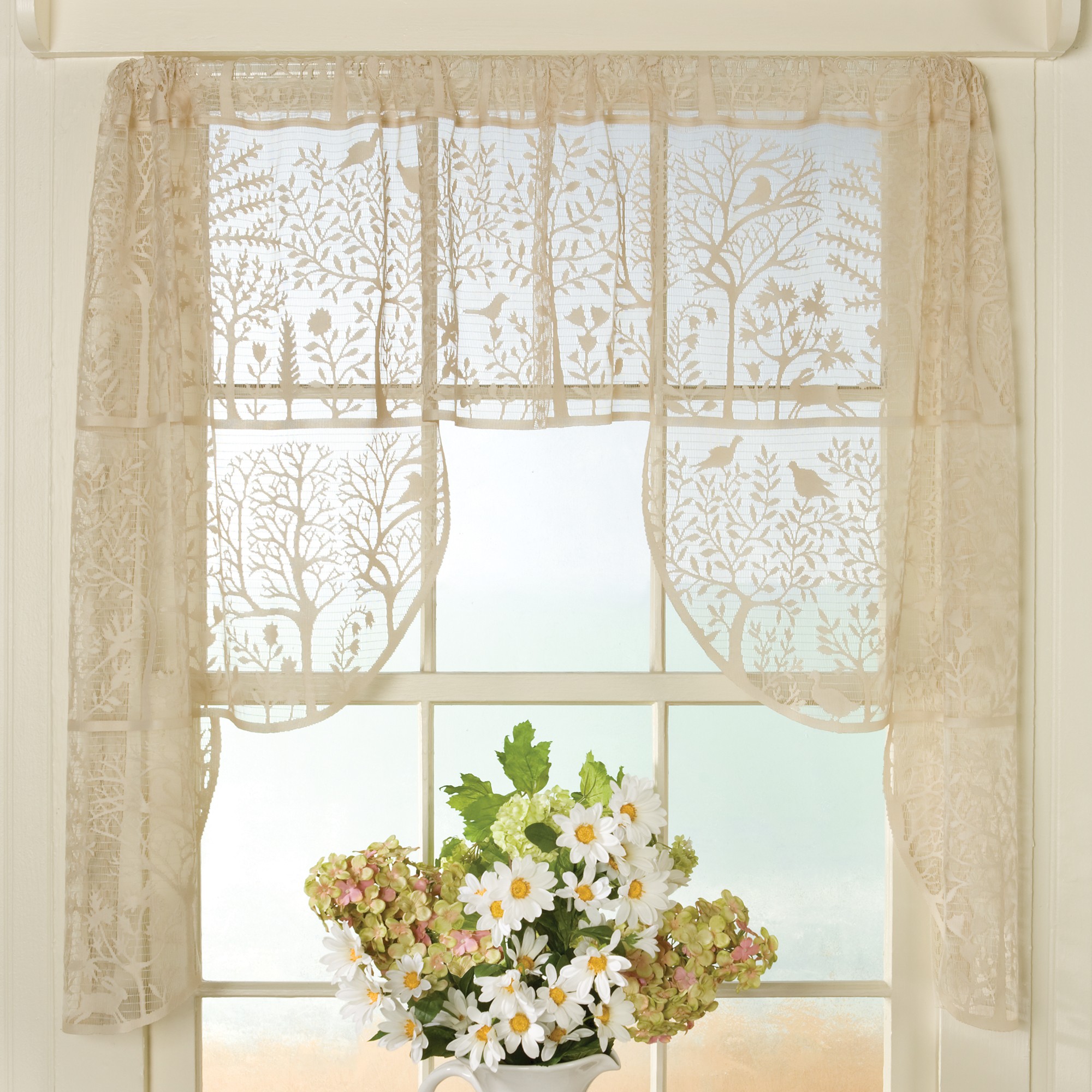 Чаще всего, как понятно из названия, данный вариант оформления штор использовался для украшений кафе, стремящихся придать своим заведениям атмосферу «домашнего уюта». Наиболее распространены рисунки следующего типа: цветочные и растительные узоры, животные мотивы, мотивы в клетку. Идеально подходят для обустройства дизайна кухни, обеденной комнаты.