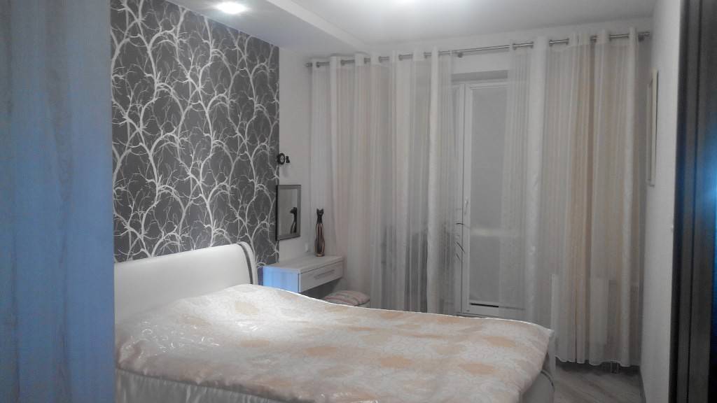 Данные конструкции состоят из застекленной двери, соединенной с массивным окном. Способ декорирования балконного блока зависит от назначения и размеров комнаты, в которой он располагается. Если это небольшая спальня, можно занавесить конструкцию тонкими муслиновыми шторами, образующими мягкие складки.