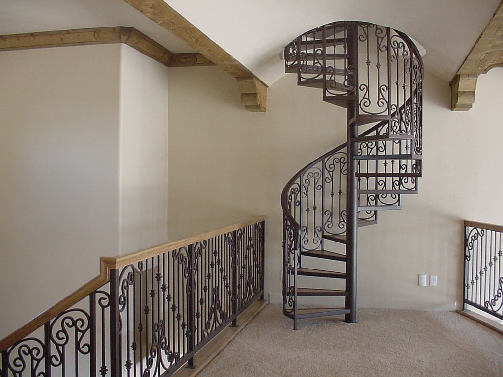 Лестницы спиральные изготавливаются из металла или дерева, со стойкой в центре или на тетивах. Как правило, модель не предусматривает подступенков – их присутствие делает винтовую лестничную конструкцию не очень удобной в каждодневном применении.