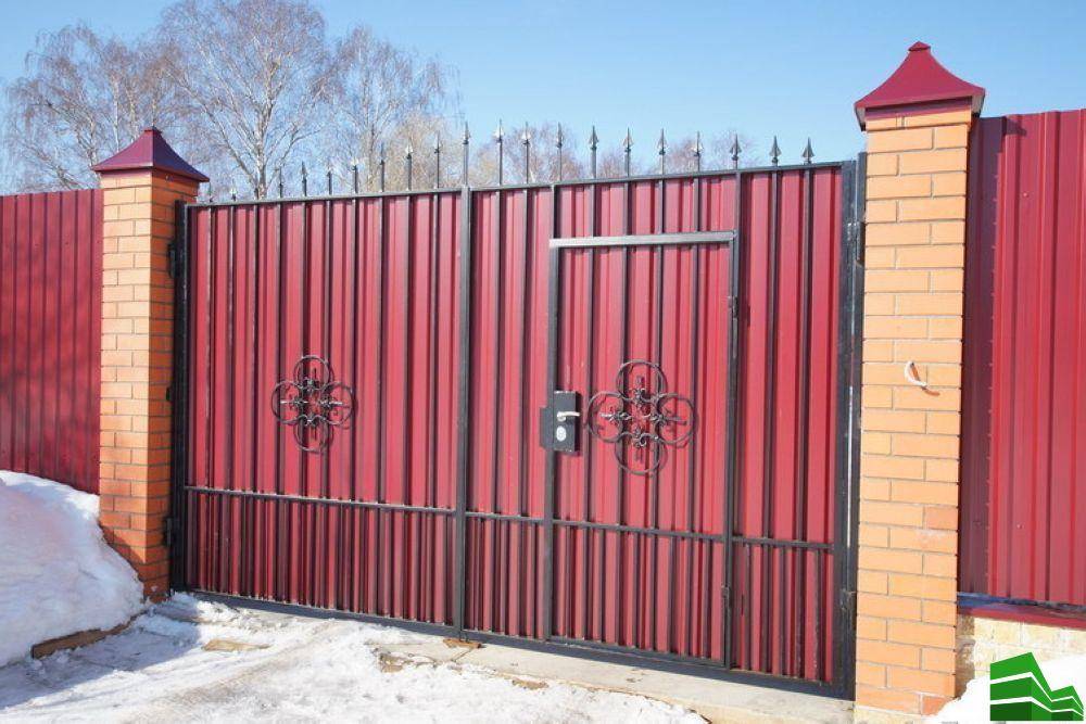 Даже не смотря на большое количество недостатков, владельцы частных коттеджей, чаще всего отдают предпочтение воротам из профнастила.